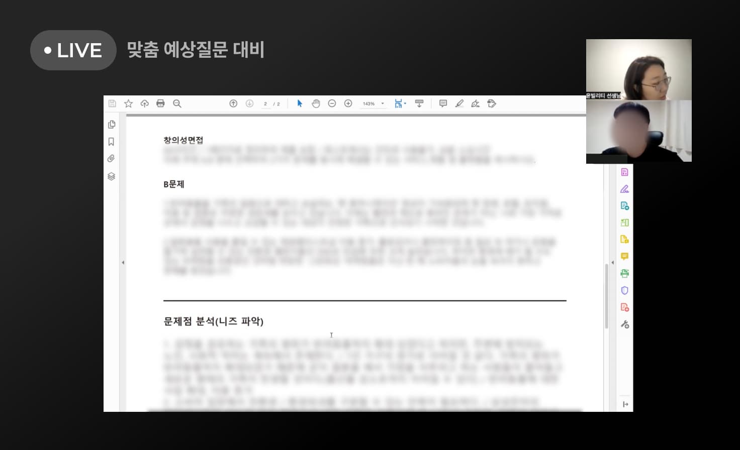 실무진+ 임원 면접을동시에 대비 해드립니다.