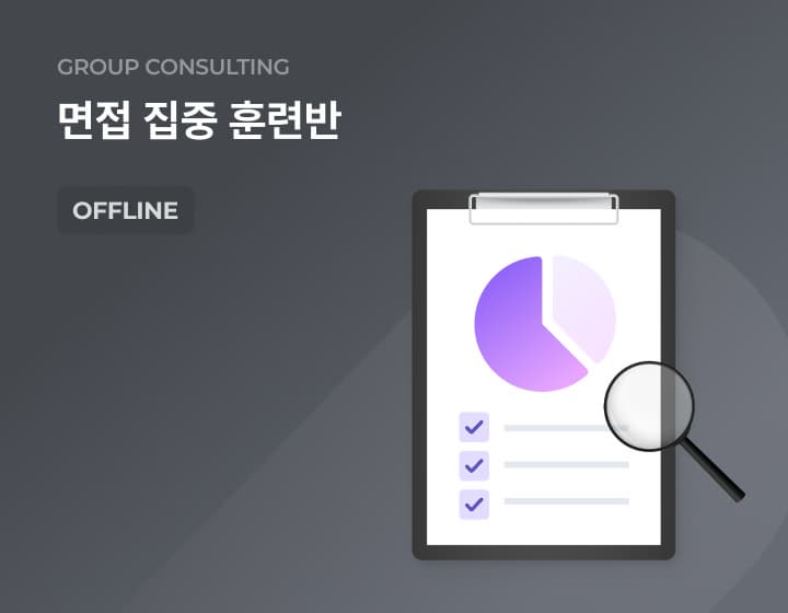 해당 그룹 컨설팅은 면접에 집중하여 훈련하는 클래스입니다. 자소서 첨삭과 실기 등 취업 전반에 대한 대비를 원하실 경우, [대기업/중견 취업준비반] 클래스를 신청해주세요.