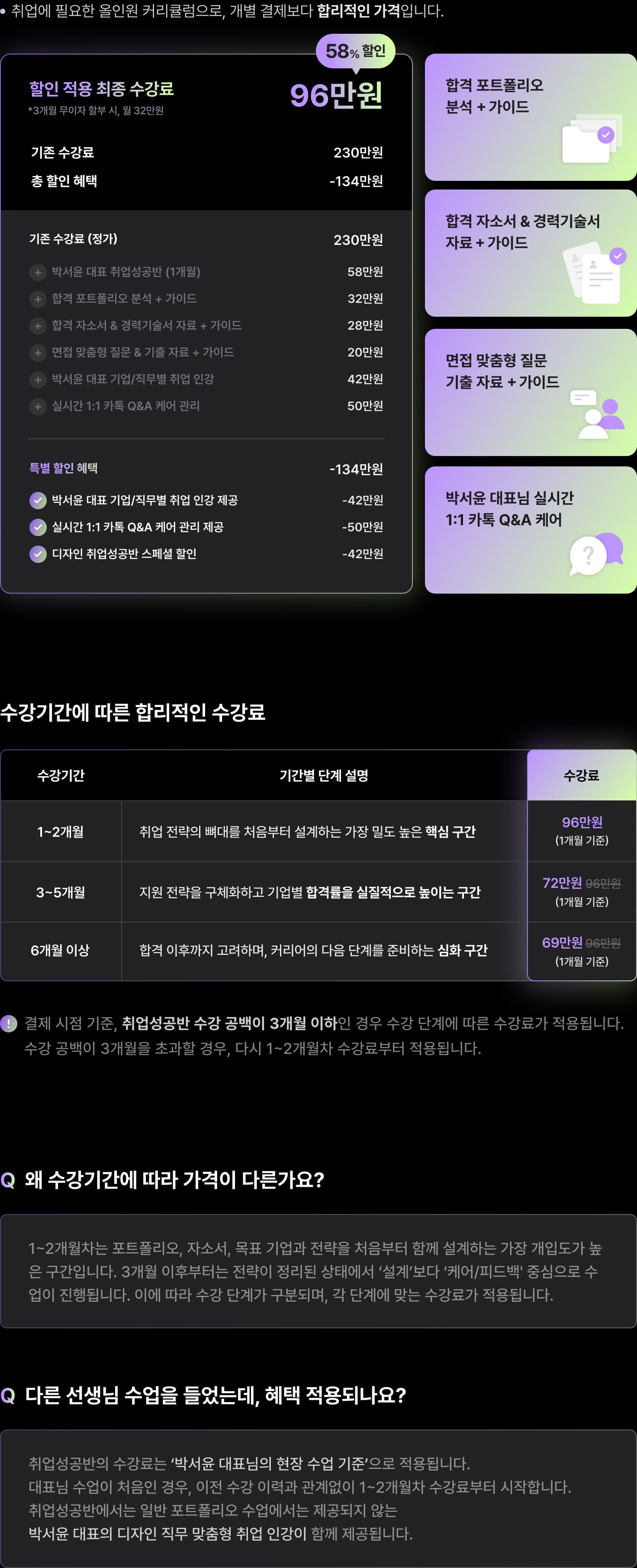 네, 일반 [포트폴리오 수업]에서는 제공되지 않는 박서윤 대표의 디자인 직무 맞춤형 취업 인강이 함께 제공됩니다. 인강에는 합격 자소서도 포함되어 있습니다.