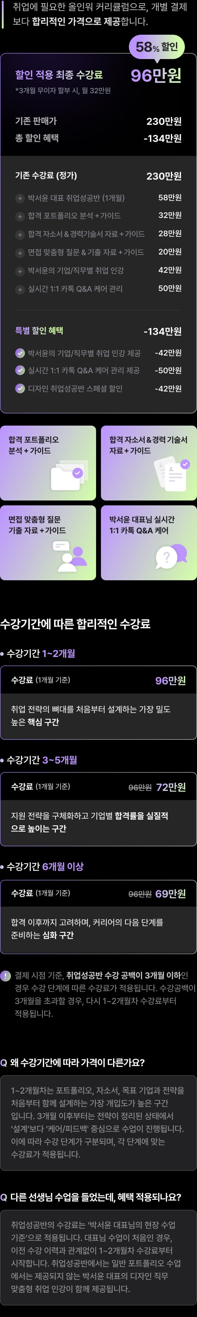 합격 데이터 기반으로 취업 전과정을 함께하는 프리미엄 소수정예 클래스입니다.