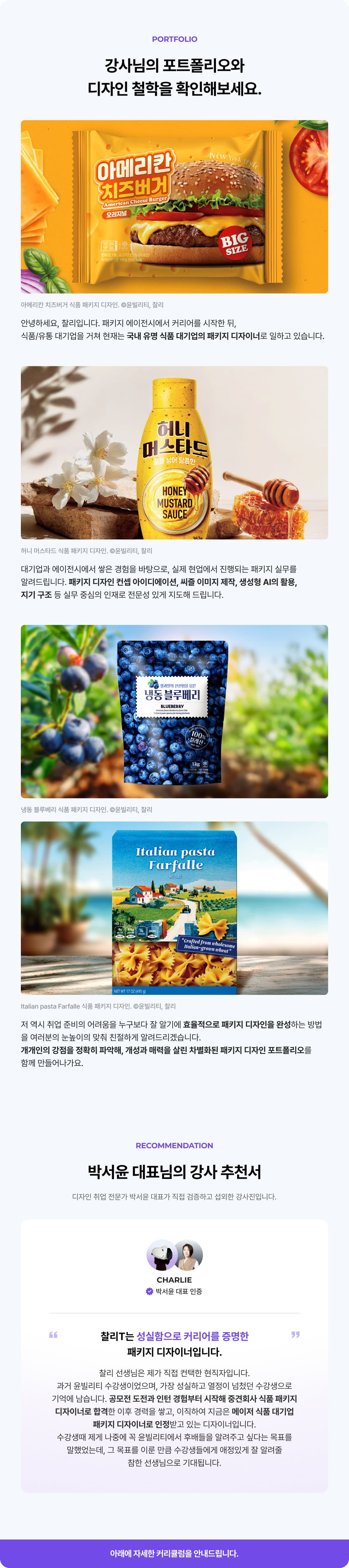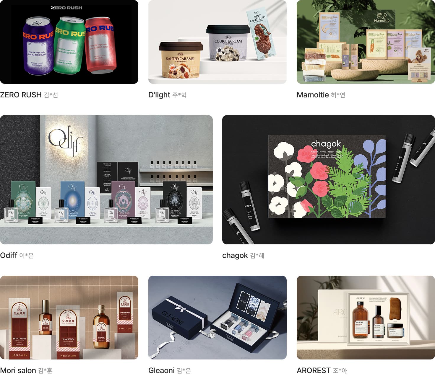 패키지·제품 포트폴리오 클래스를 수강한 수강생의 작업물입니다.