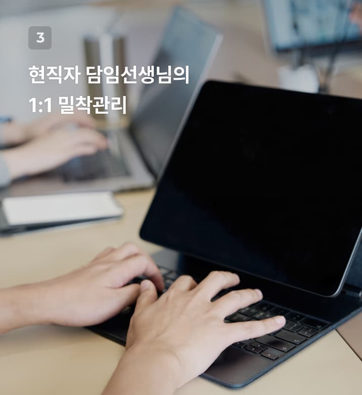 수료 전, 상담을 통해 개인별 상황과 강점을 파악하여 체계적으로 관리합니다.