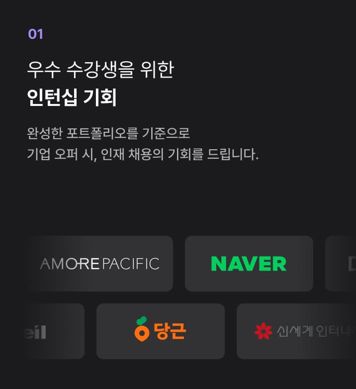 뷰티/패션/금융/리빙 등 다양한 산업군별 과제를 맞춤형으로 제공합니다.