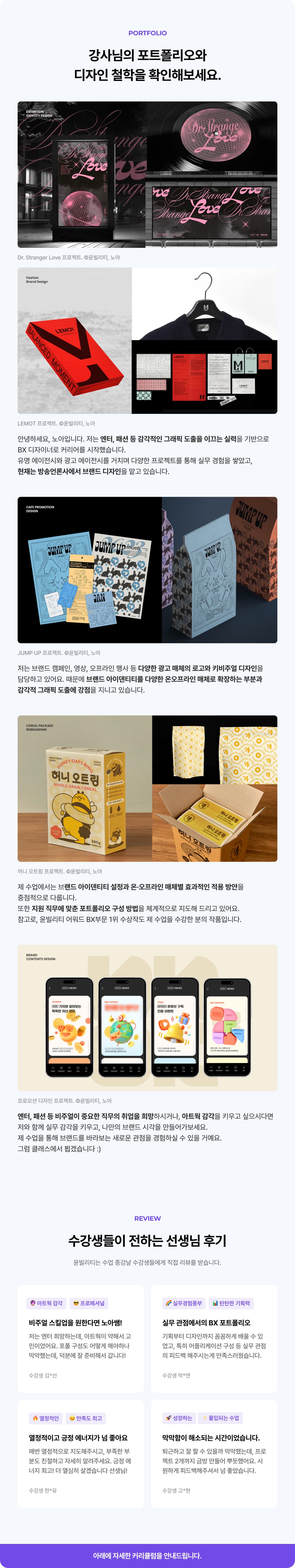 BX 포트폴리오 클래스를 수강한 수강생의 작업물입니다.