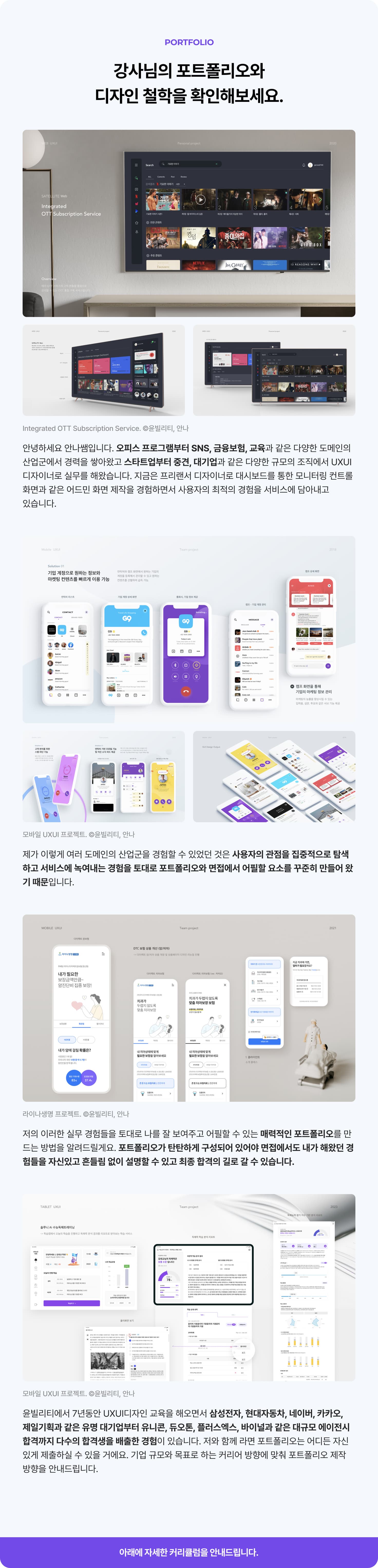 UXUI·서비스기획 포트폴리오 클래스를 수강한 수강생의 작업물입니다.