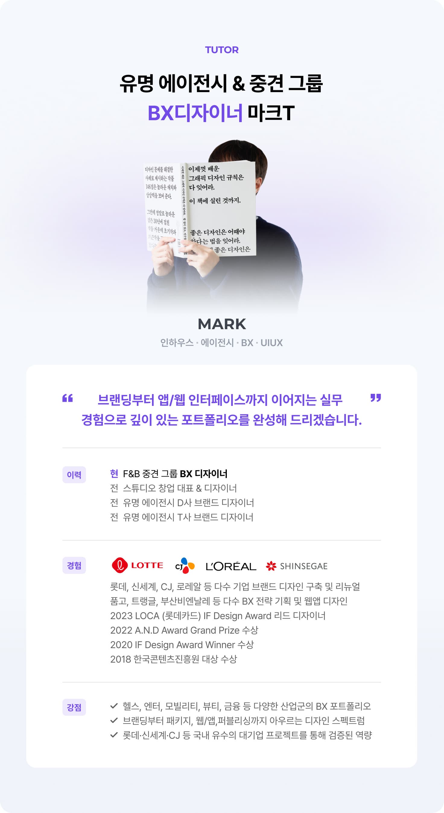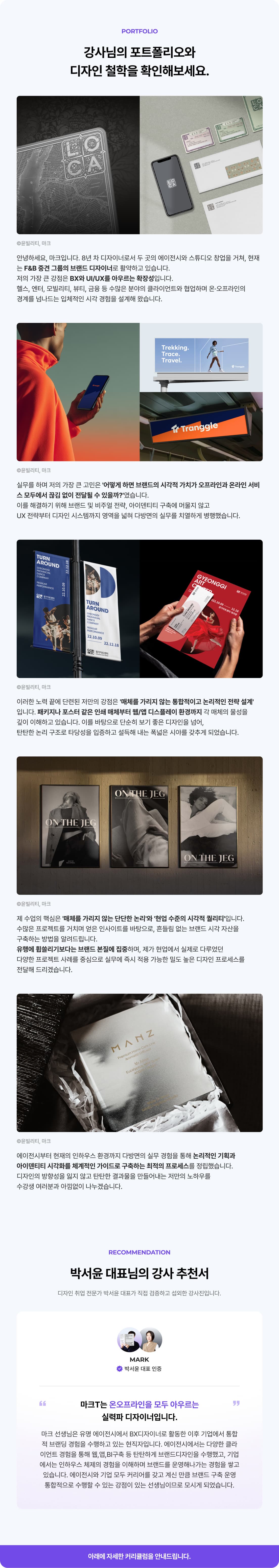 BX 포트폴리오 클래스를 수강한 수강생의 작업물입니다.